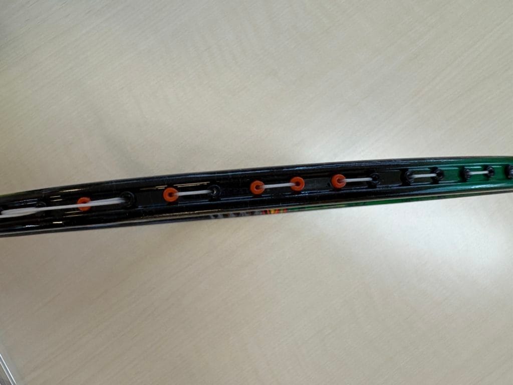 ストリングの可動域が広がり、打球時の接触時間と球持ちが向上しました。