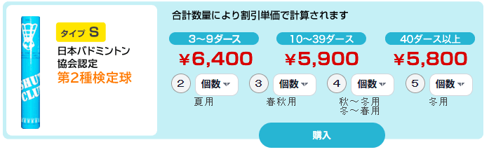 インターネットで購入することができるシャトルクラブのシャトル。