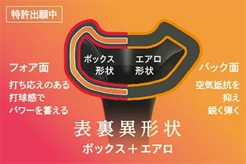 ラケット面が表と裏で違う形状となっており、フォアハンドとバックハンドを使い分けることでそれぞれのショットが打ちやすくなっている。